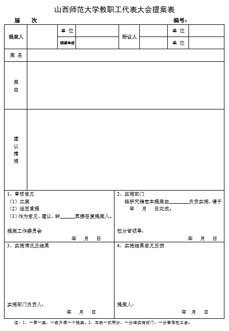 今年会教职工代表大会提案表