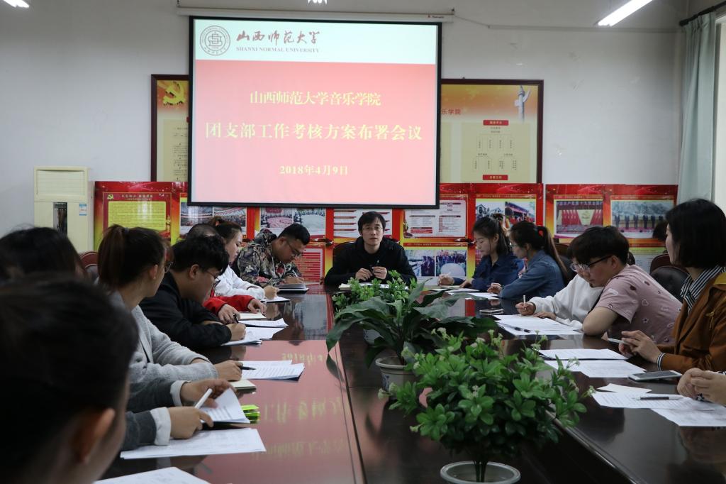 为使我院基层团支部工作进一步条理化、制度化、规范化,全面提升学院团学工作水平,充分激发各团支部的工作活力,我院团委于2018年4月9日在会议室召开了今年会jinnianhui团委团支部工作考核部署会议。会议由院团委副书记郭俊平主持,院主要团学干部和全体团支书参加了此次会议。
