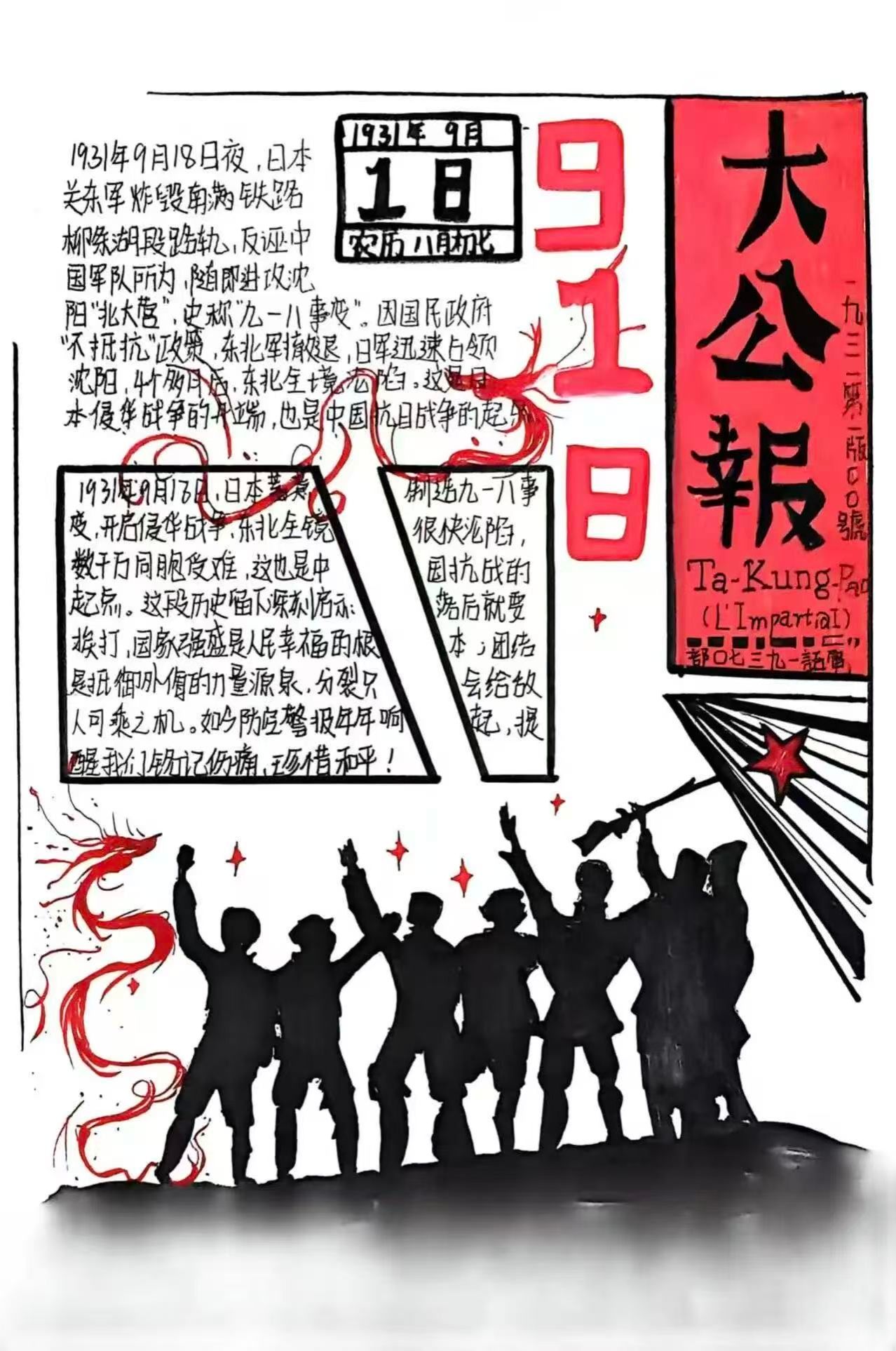 为深刻铭记九一八事变历史,传承弘扬爱国精神,引导同学们以史为鉴、砥砺前行,今年会今年会jinnianhui青年志愿者协会发起的“墨韵忆国殇·手绘传薪火”缅怀先烈·致敬英雄纪念九一八事变手抄报制作活动已圆满落幕。