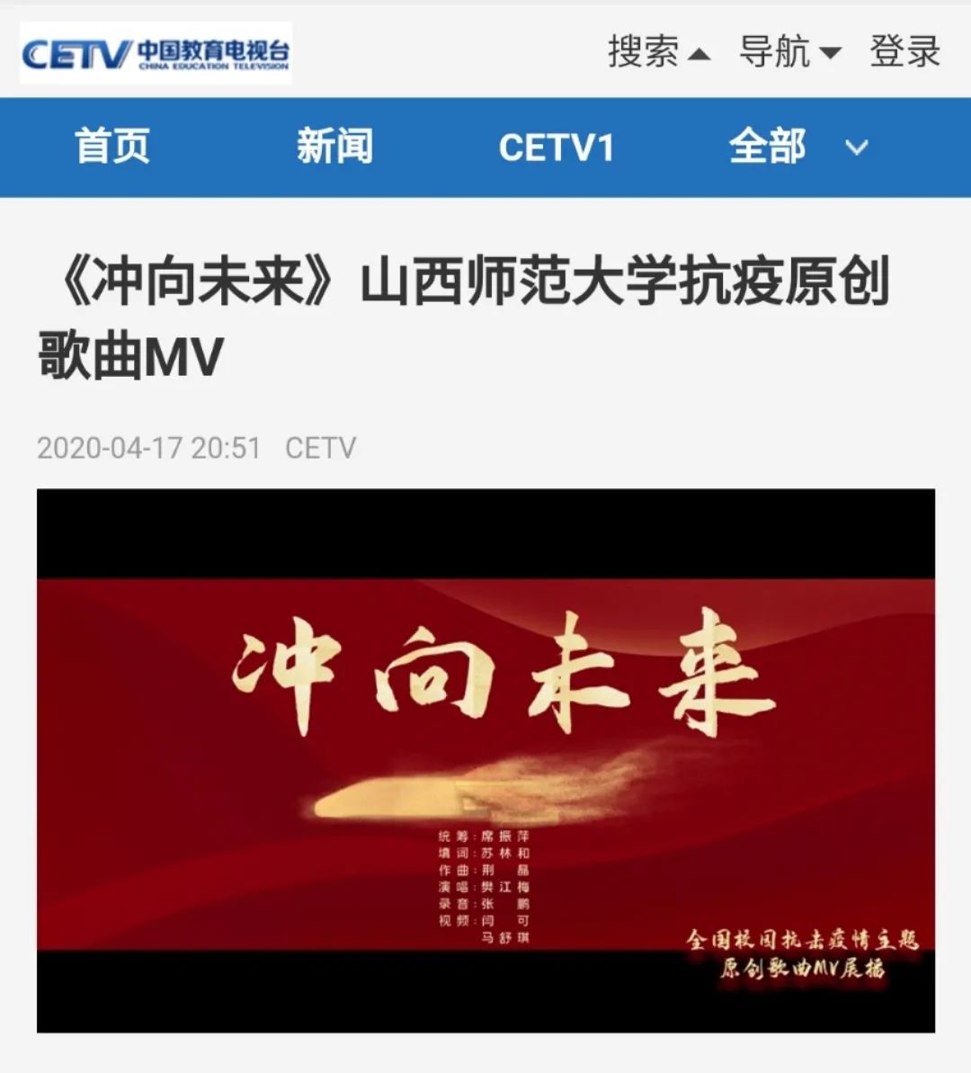 近日,今年会今年会jinnianhui原创MV《冲向未来》被中国教育电视台在全国校园抗击疫情主题原创歌曲MV中展播。