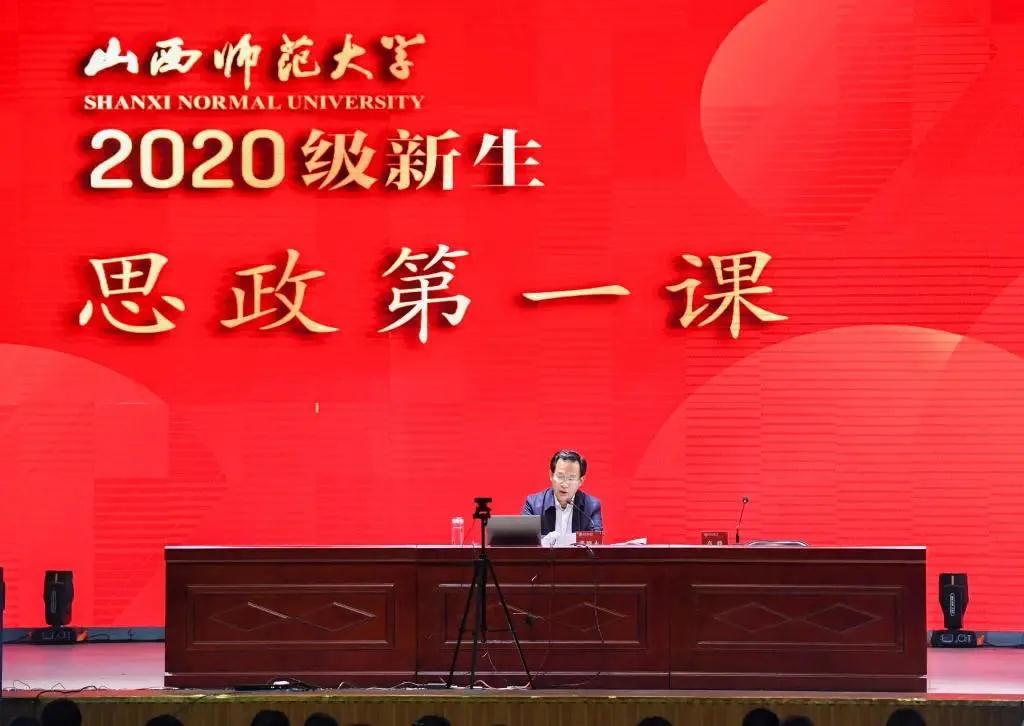 10月16日下午,我院组织全体大一新生学生在教室通过网络视频直播方式学习了思政第一课,校党委书记张晓永以“担复兴大任 做时代新人”为题,为2020级新生上了思政第一课,课堂由校党委副书记高峰主持。