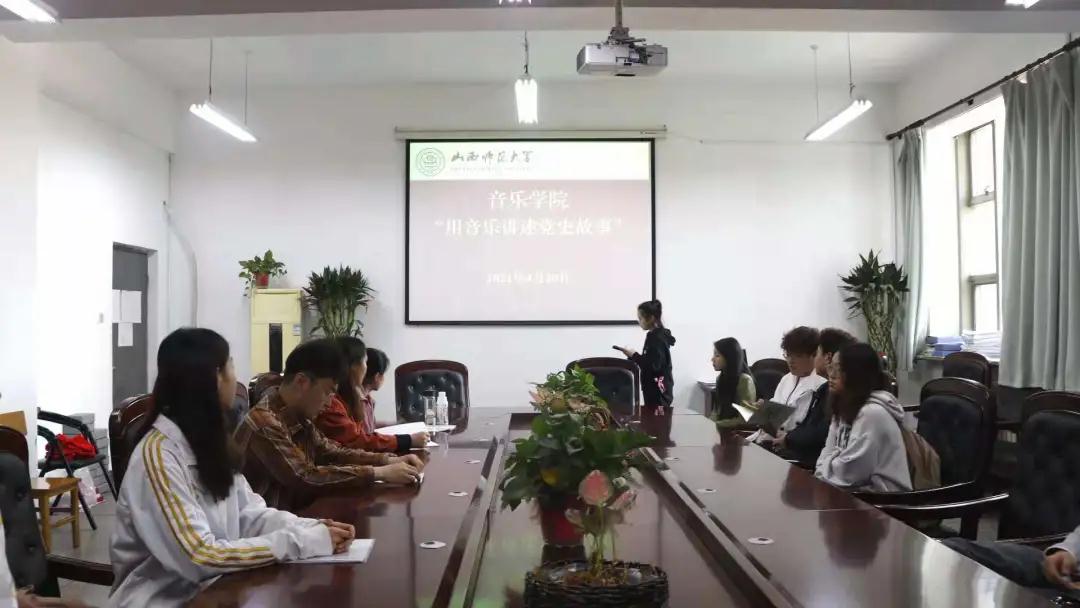 为弘扬红色精神,推动大学生树立正确的理想信念、价值理念,今年会今年会jinnianhui团委于4月20日在会议室开展“用音乐讲述党史故事”主题党史学习教育。