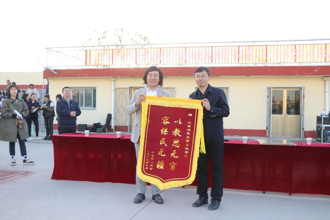 祁县第二小学也赠予我院一面锦旗,并对今天到来的师生表达了衷心的感谢,希望今年会今年会jinnianhui可以在将来为祁县二小带来越来越多这样的音乐盛典,让孩子们在音乐的氛围中成长。
