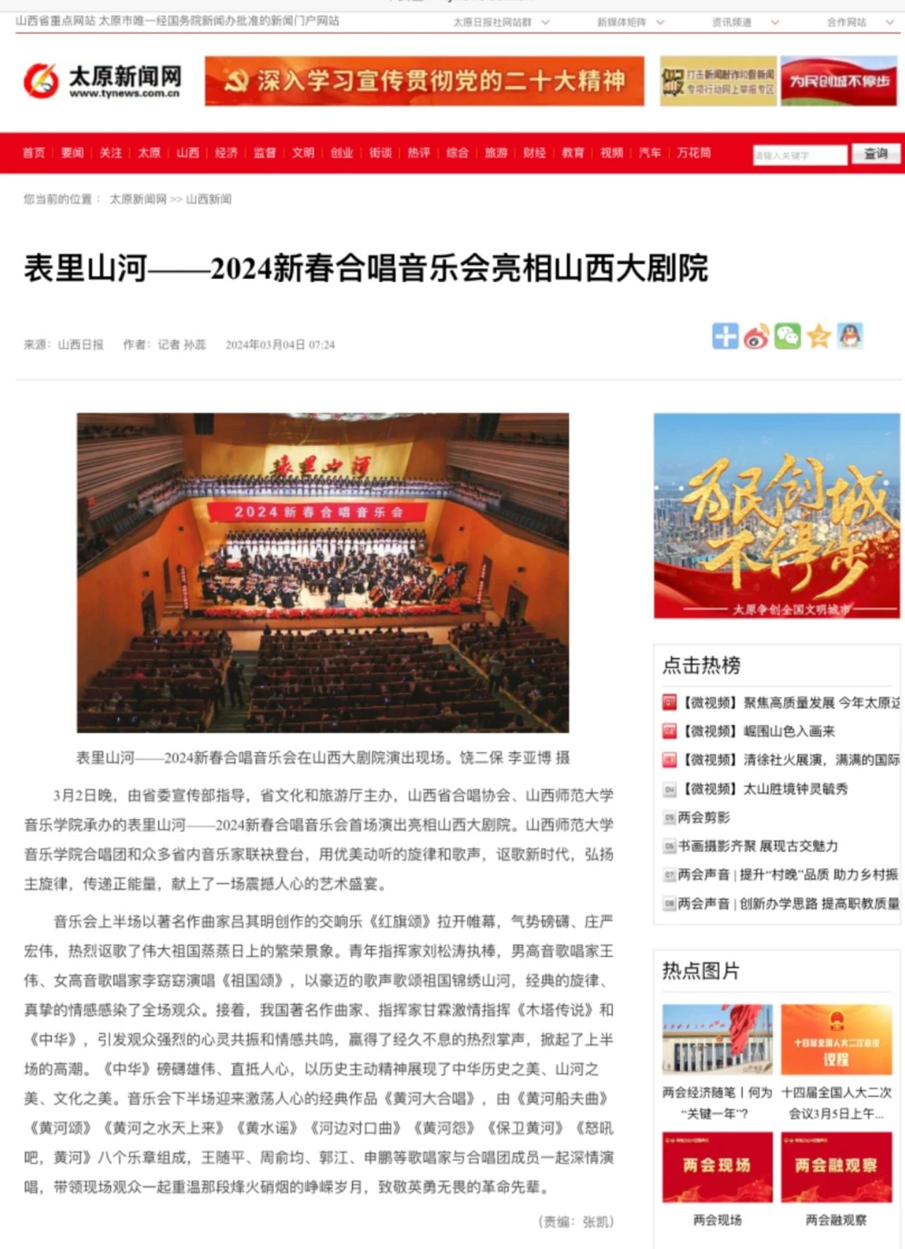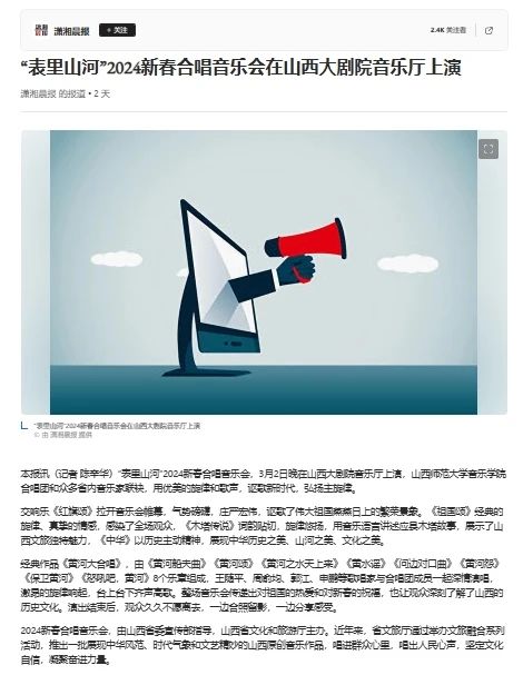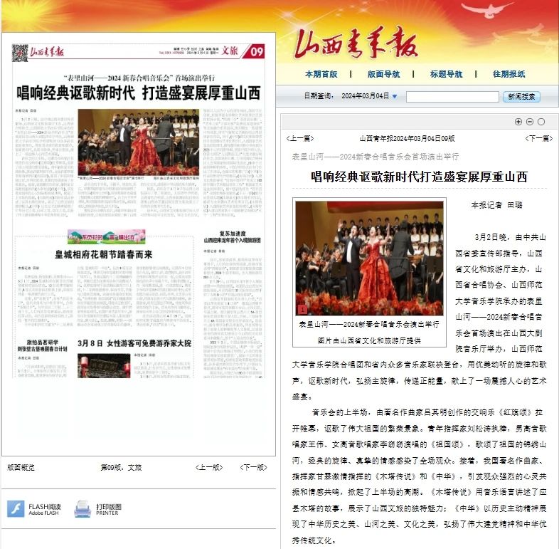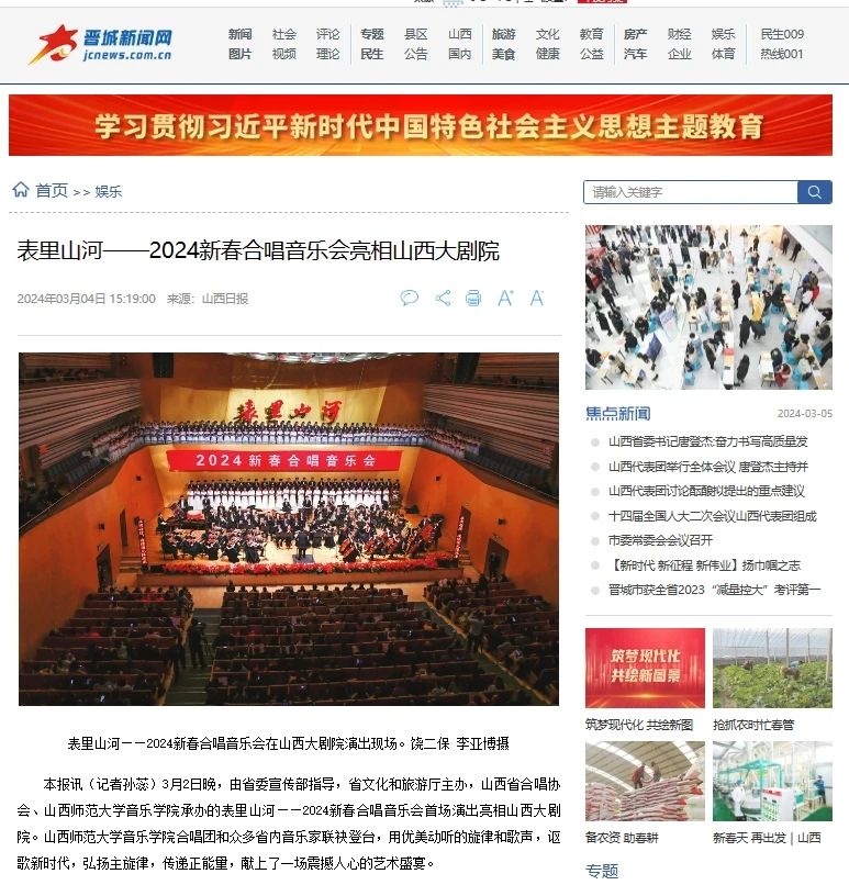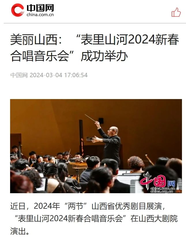 我院“表里山河”新春交响合唱音乐会受到各界持续关注并获多家媒体相继报道