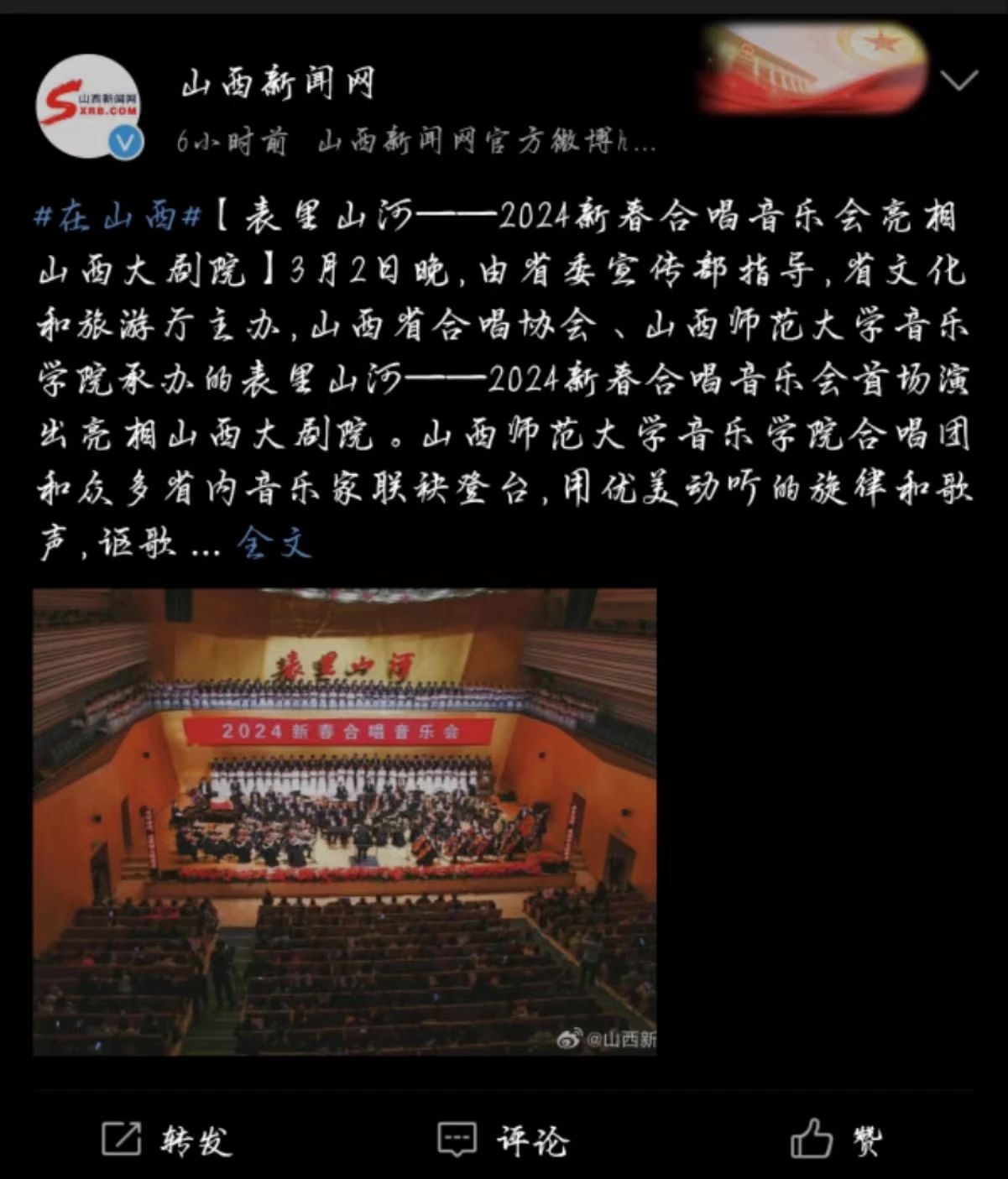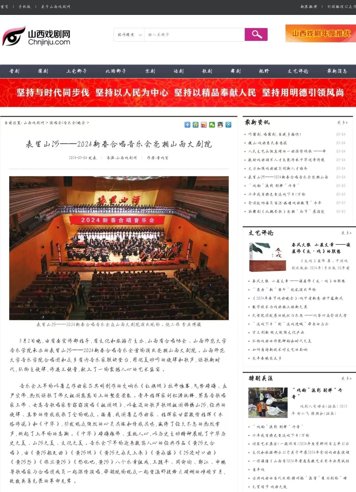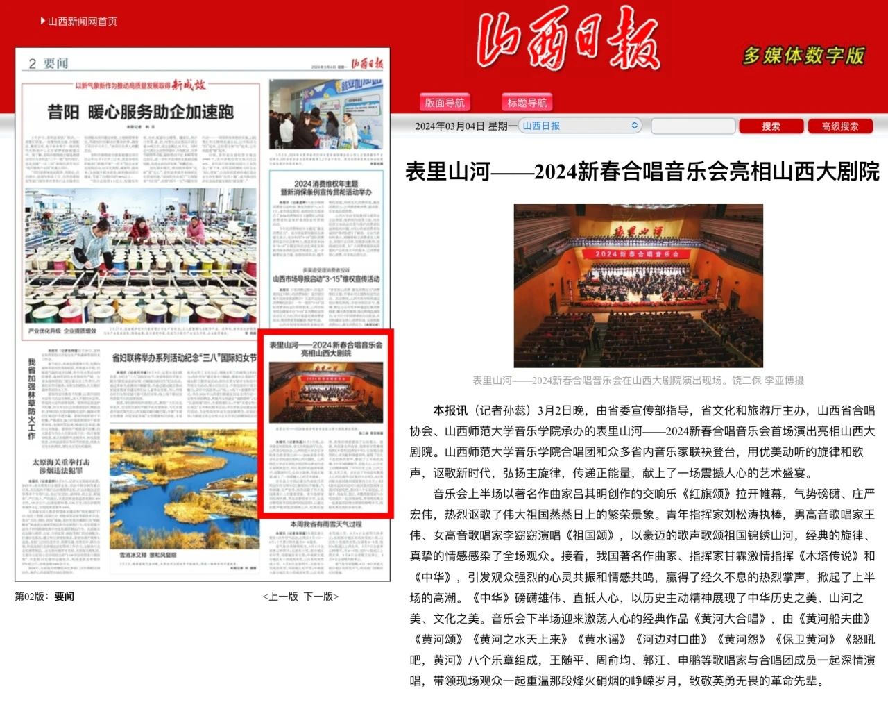 我院“表里山河”新春交响合唱音乐会受到各界持续关注并获多家媒体相继报道