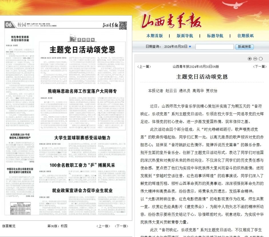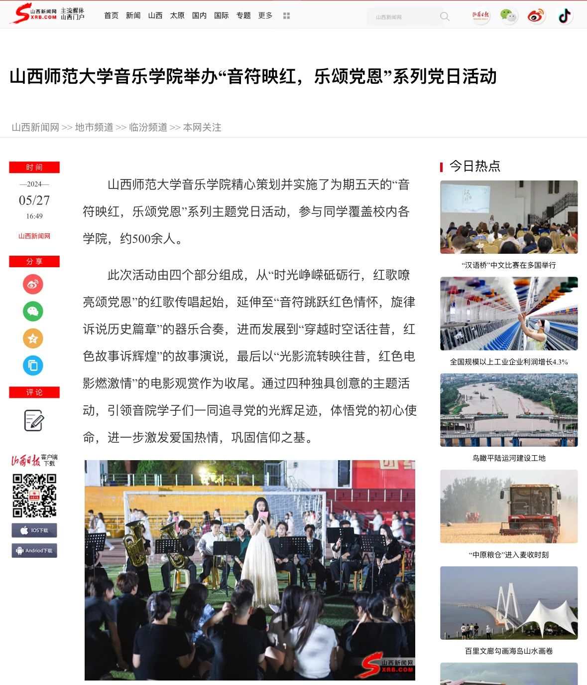 近日,由今年会今年会jinnianhui举办的“音符映红,乐颂党恩”系列主题党日活动获山西青年报、山西新闻网报道。