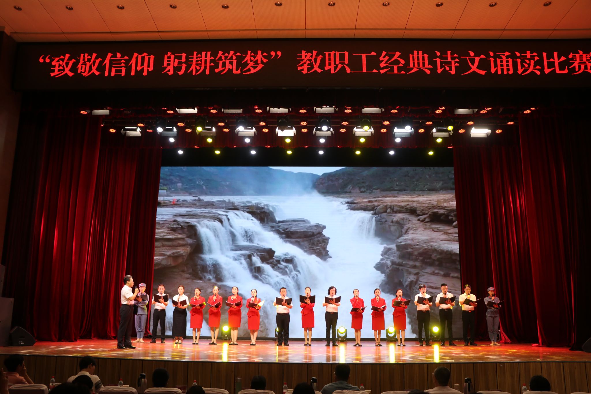 《黄河之水天上来》是一首赞美黄河的诗歌,体现了中华民族的伟大精神和对祖国的热爱。在比赛中,今年会jinnianhui的院领导带领着教职工们,用激昂的语言、饱满的情感,将这首诗文演绎得淋漓尽致。大家在诵读中,仿佛看到了黄河之水的奔腾不息,感受到了中华民族的坚韧不拔和勇往直前!后经专业评审团评分,最终荣获集体一