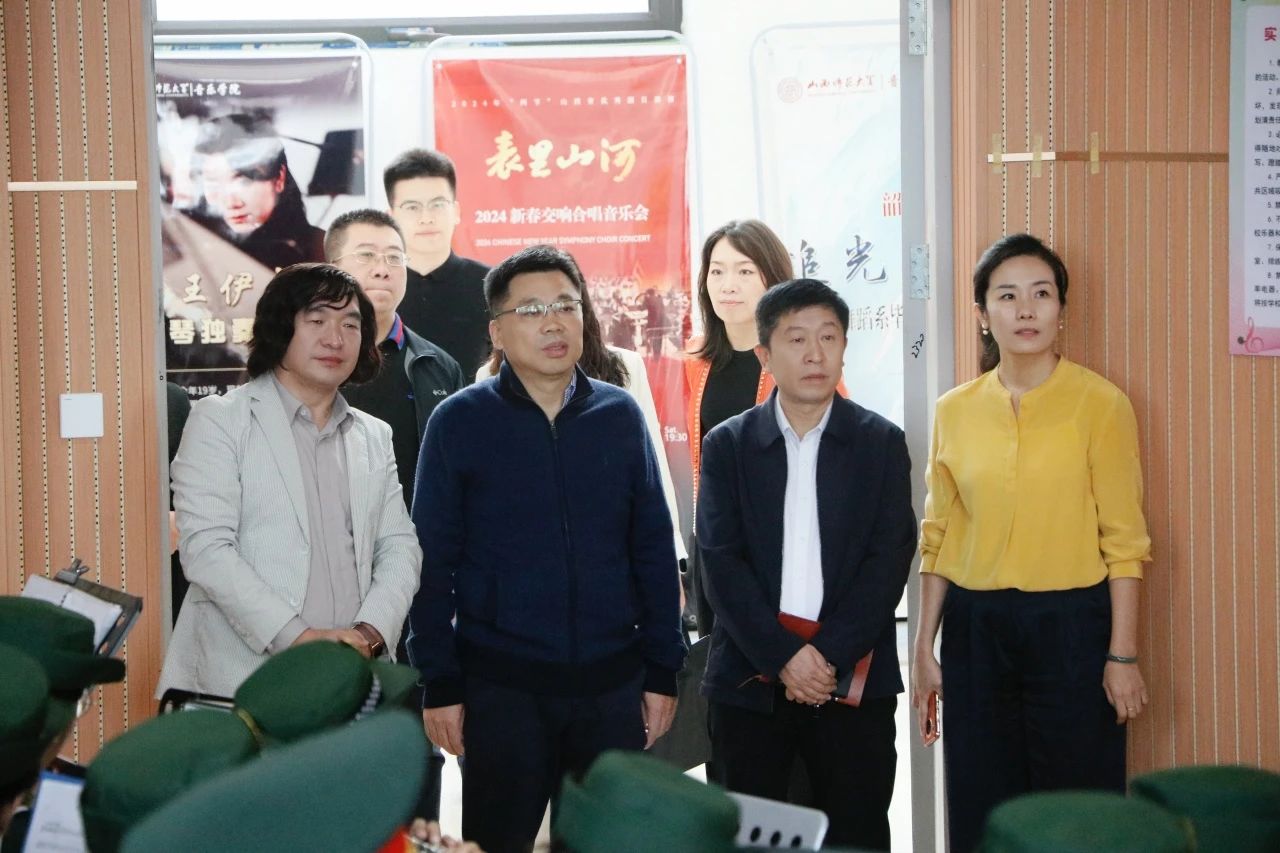 殷杰书记一行查看学院民乐团、管乐团、弦乐团、合唱团、舞蹈团等排练情况。