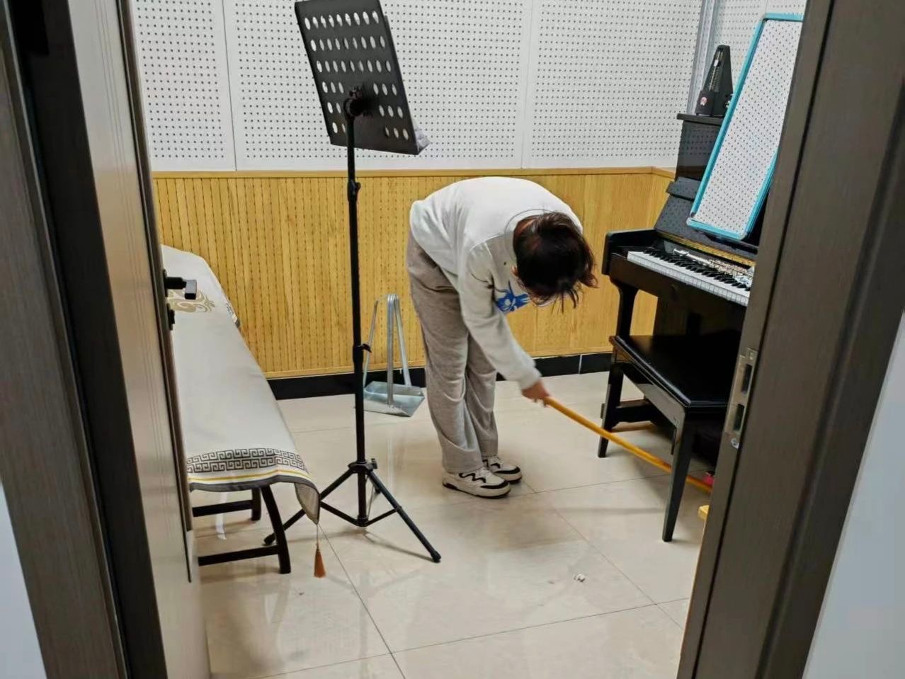 活动中,同学们热情高涨,迅速投身到校园清洁工作中。大家手持清洁工具,积极穿梭于琴房与楼道之中,认真擦拭琴房的每一台钢琴,仔细清扫楼道的每一级台阶,不放过任何一个卫生死角。活动结束后,同学们纷纷表示,以往对环保的理解更多停留在理论层面,通过这次活动,真切地体会到环保就在身边的每一处角落。