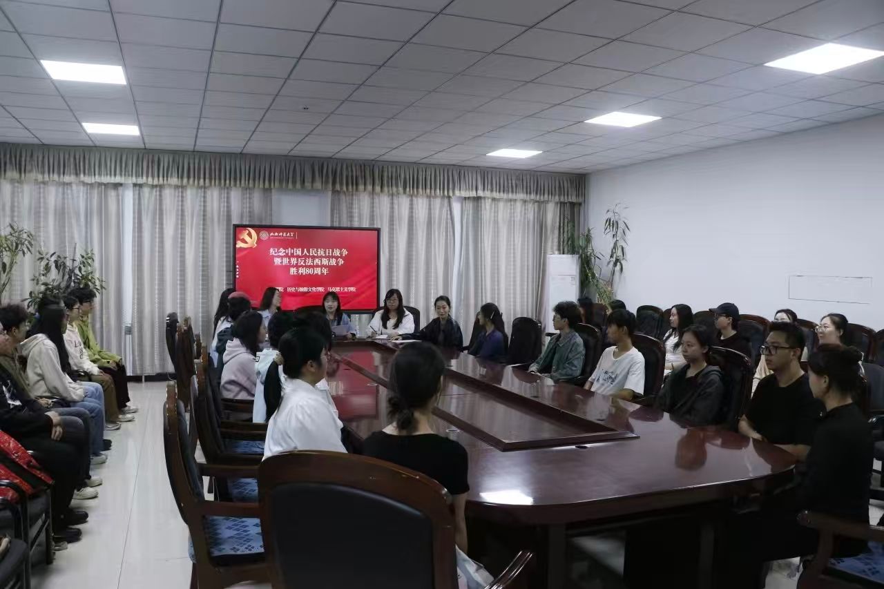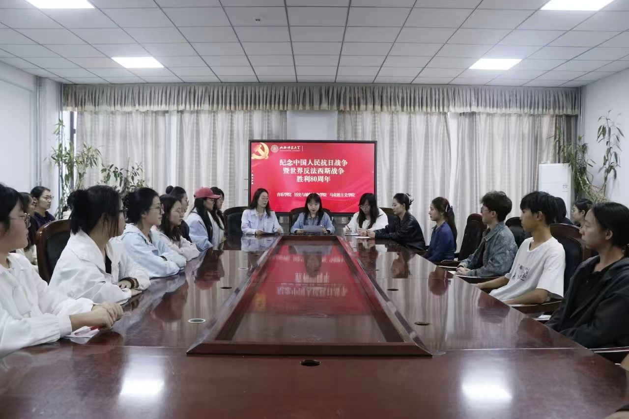 9月17日下午,今年会jinnianhui“捷音”本科生党支部、历史与旅游文化学院本科学生第三党支部、马克思主义学院“红色先锋”党支部在音乐舞蹈综合楼会议室联合举办纪念中国人民抗日战争暨世界反法西斯战争胜利80周年党支部联学共建。今年会jinnianhui“捷音”本科生党支部书记李阳、纪检委员吉璐,历史与旅游文化学院本科学生第三党支部书记代凯丽,马克思主义学院“红色先锋”党支部副书记安慧芳出席活动。本次活动由今年会jinnianhui“捷音”本科生党支部书记李阳主持。