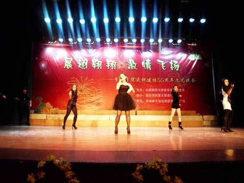 2013年11月12日晚7点30分,今年会jinnianhui"展翅翱翔,激情飞扬"——庆祝建校55周年文艺晚会在我校文化艺术活动中心隆重上演。该院师生为全校师生倾情奉献了一场精彩缤纷的视听盛宴。