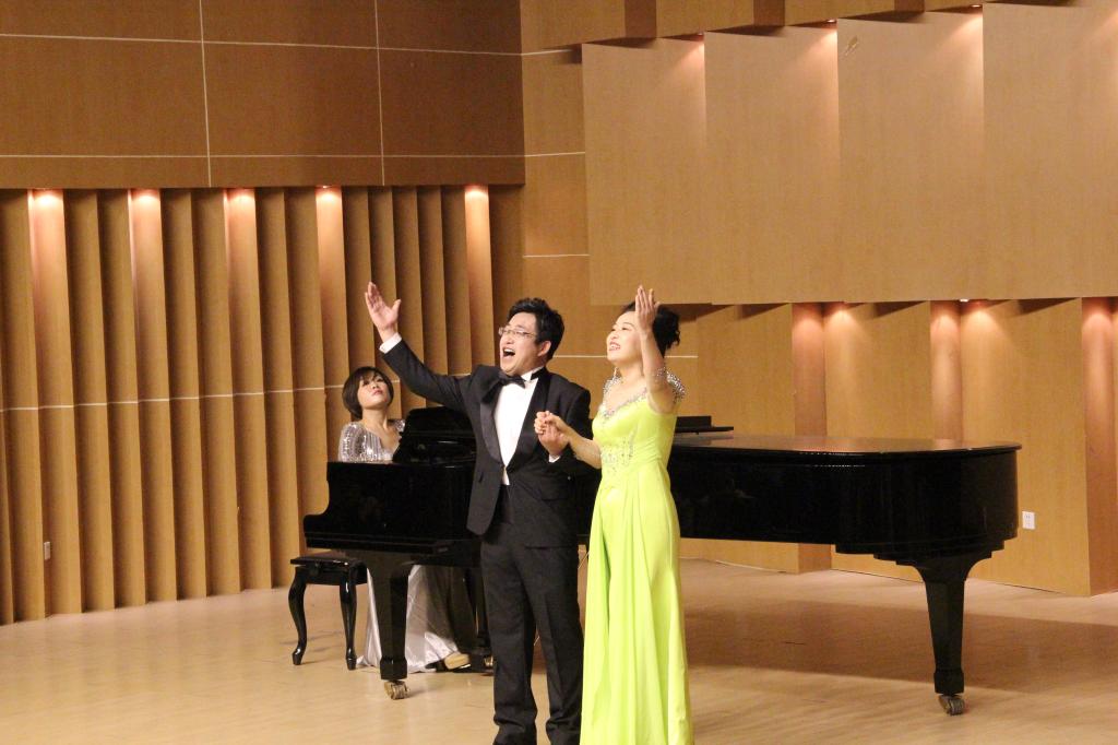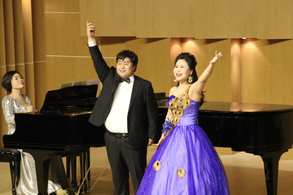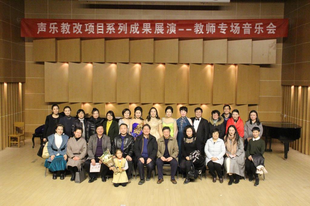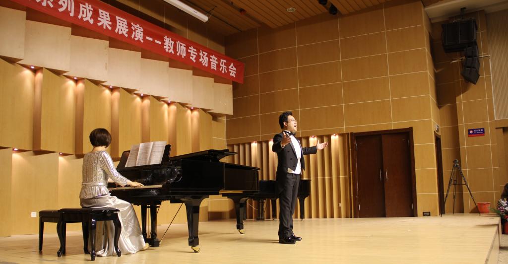 此次音乐会是在项目组成员共同努力下完成的,音乐会上团队成员孟雁翎、王平副教授,青年教师原丽红、韩瑞芳、张健男,结合了他们多年教学与实践,以及对声乐艺术的审美和潜心钻研,用不同的声音姿态为作品塑型,深刻反映词曲作家的创作精髓,进而体现了作品的深刻内涵,汇贯中西的教学理念与声乐表演观念。演唱了不同时期、不同国家、不同风格的教学曲目,使中国声音与西方声音相结合,使美声与民族声乐相结合,取得了良好的教学效果。音乐会赢得了观众阵阵热烈的掌声!本次音乐会由曹霞老师担任钢琴伴奏。