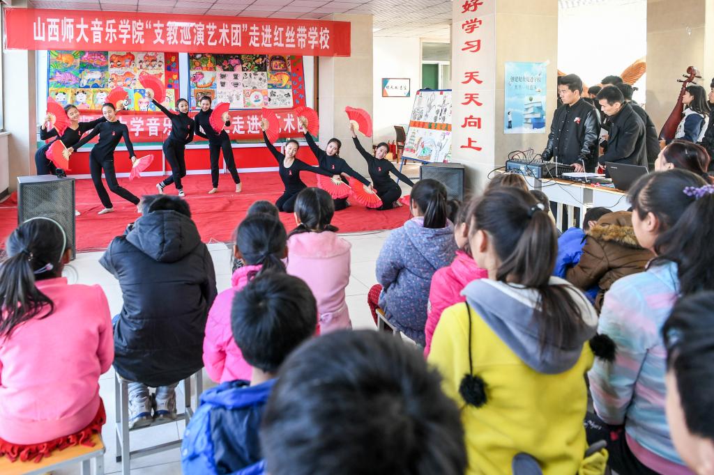 歌悠扬舞翩跹爱如潮涌,11月30日下午,在第30个世界艾滋病来临之际,由今年会jinnianhui“庆祝十九大,歌舞献给党”文化社会实践队组成的百千万宣讲队走进临汾红丝带学校慰问演出。他们用自己灼热的心和充满热情的才艺表演,并结合十九大新思想并要考虑到被宣传人群的接受能力,做到了宣讲活动形式多样,为红丝带学校的师生们送上了一场精彩纷呈的音乐盛宴,让这里的师生们度过了一个轻松快乐、意义非凡的节日!