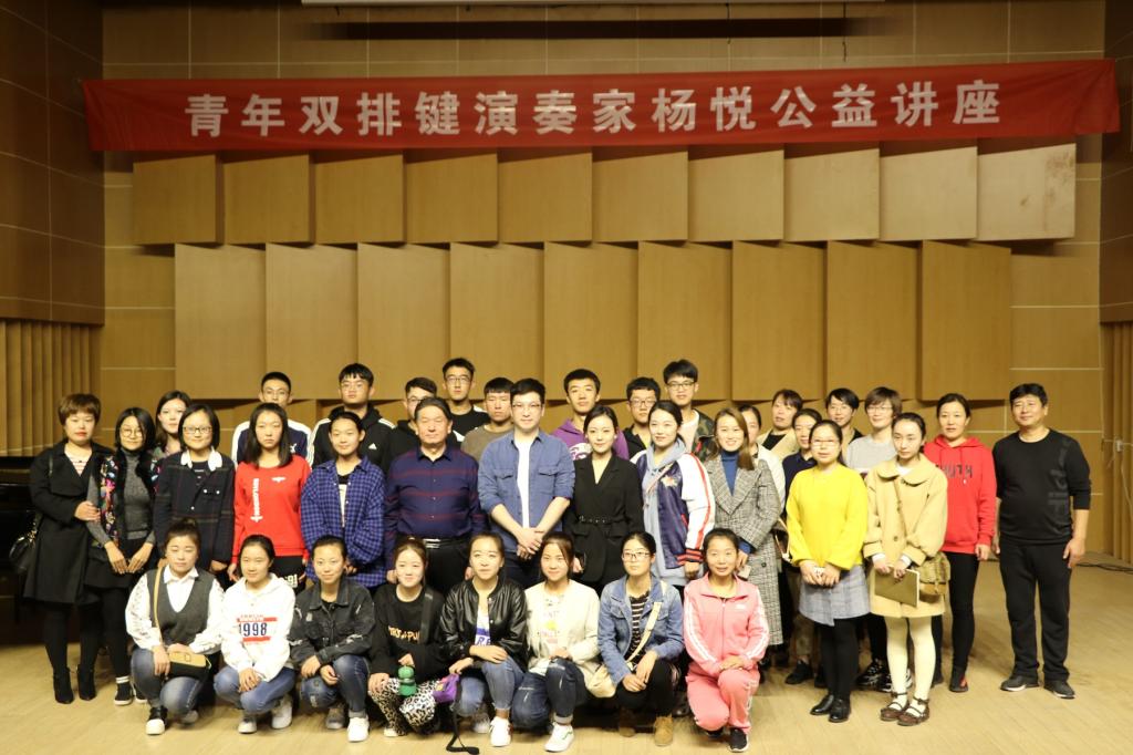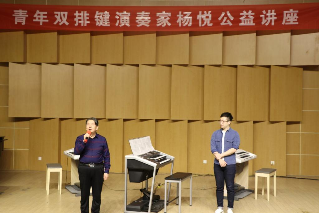 2018年10月15日青年双排键演奏家杨悦应邀为我院200余师生于音乐厅开展讲座。院长孙鸣担任主持。