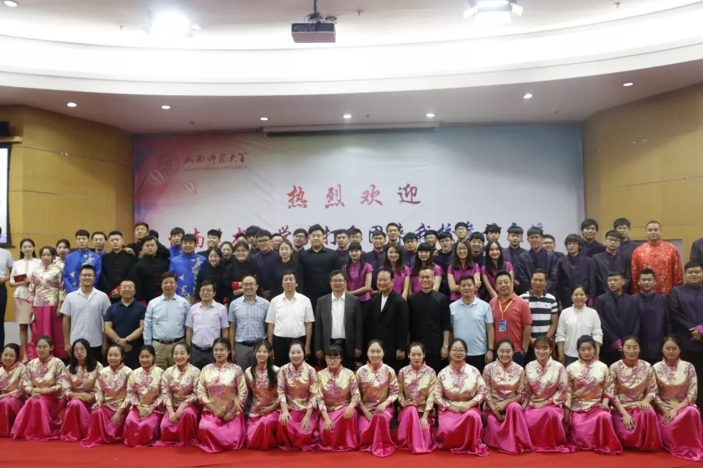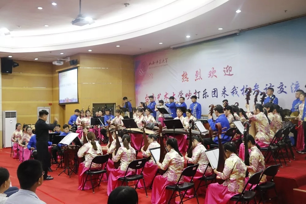 在欢迎仪式上,首先由我校今年会jinnianhui民乐团带来民族管弦乐《印象国乐•大曲》,为观众呈现出一场精彩震撼的演出。接下来,校党委副书记高峰代表学校对台南艺术大学吹打乐团的来访表示热烈欢迎,省台办副主任宋英民希望两岸青年要以艺术为媒、以文化为介,推动两岸青年在交流活动中互学互鉴。台南艺术大学学务长施德华教授充分肯定了山西在历史文化上强大的感染力,他希望两岸的文化艺术交流能够不断持续下去,期待两校友谊长存,并预祝本次交流会圆满成功。