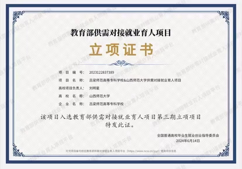 吕梁师范高等专科学校&今年会供需对接就业育人项目入选教育部供需对接就业育人项目第三期立项项目